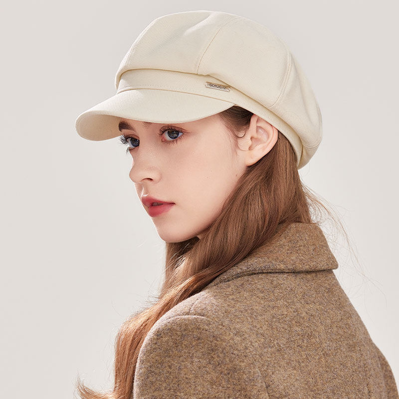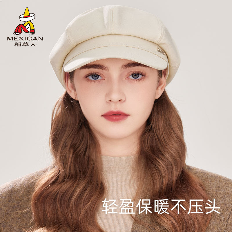 稻草人八角贝雷帽子女2025新款秋冬白色百搭显脸小复古报童画家帽