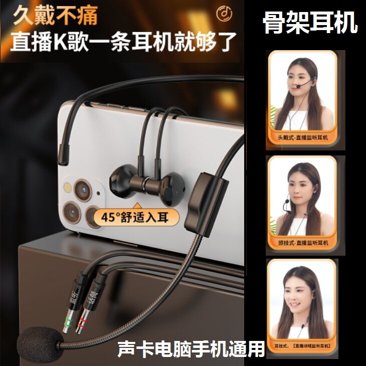主播定制声卡监听耳机带麦克风后挂式台式电脑一键闭麦金属重低音
