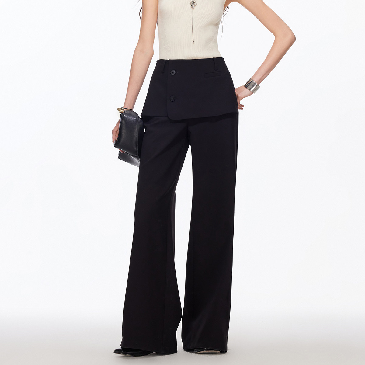 合体版型,视觉修饰腿型,显高显腿长;质感