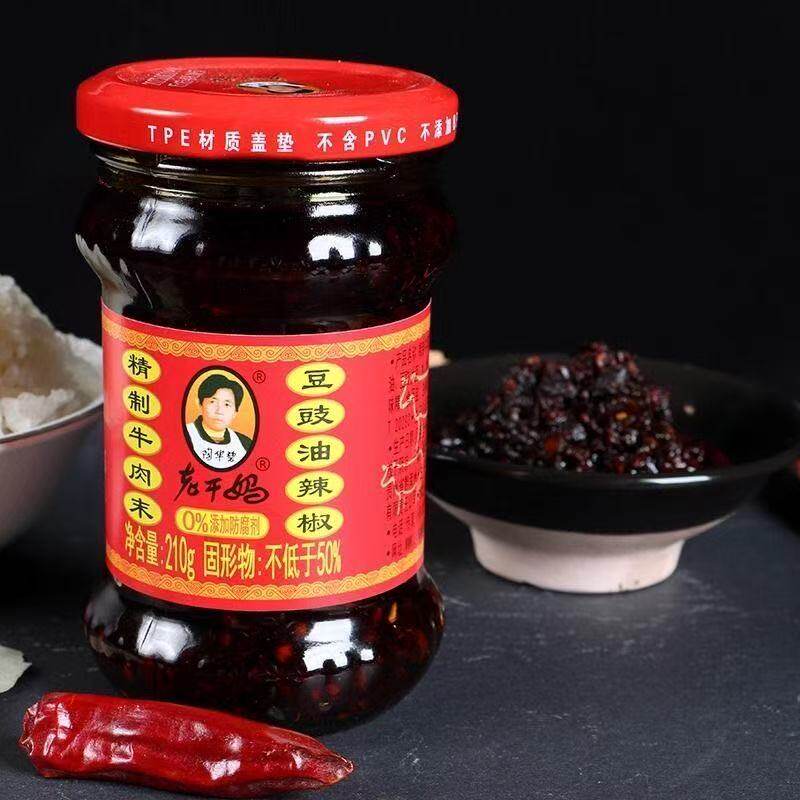 老干妈牛肉酱牛肉末豆豉油辣椒210g下饭菜拌面辣椒酱香辣精制瓶装