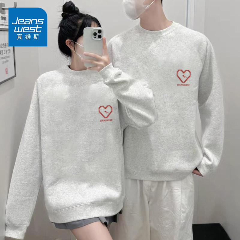 NG真维斯情侣圆领卫衣秋冬款爱心印花休闲潮流时尚百搭套头上衣服