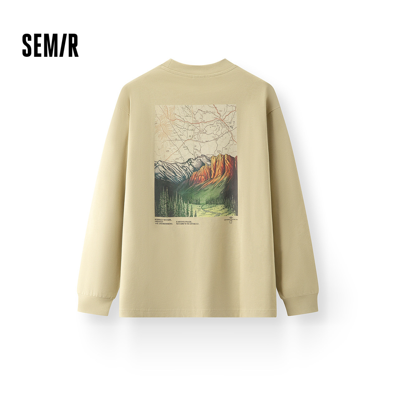 森马中国国家地理系列长袖T恤男春季前后胸印花图案上衣情侣潮流