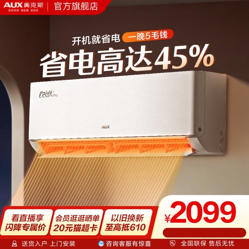奥克斯空调一级能效大1匹挂机家用卧室省电侠空调官方旗舰店