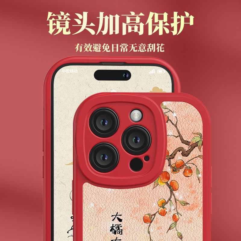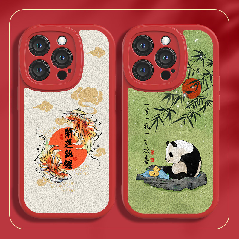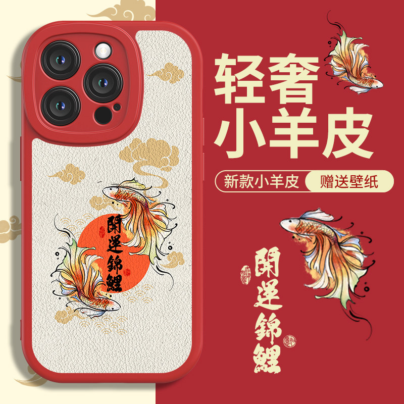 中国红新款适用于iPhone15手机壳14promax保护套小羊皮13苹果12全包边11创意15防摔xr好运锦鲤xs新年8p女15pm