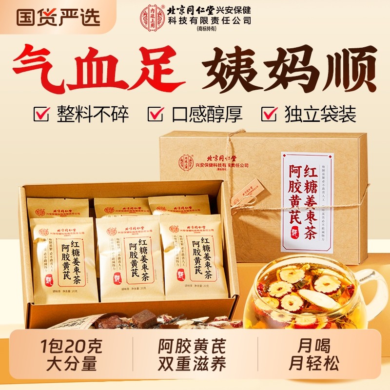 北京同仁堂阿胶黄芪红糖姜枣茶大姨妈补气血女人养生茶包内廷上用