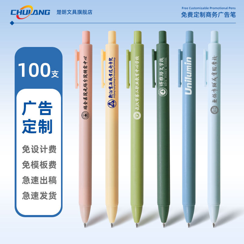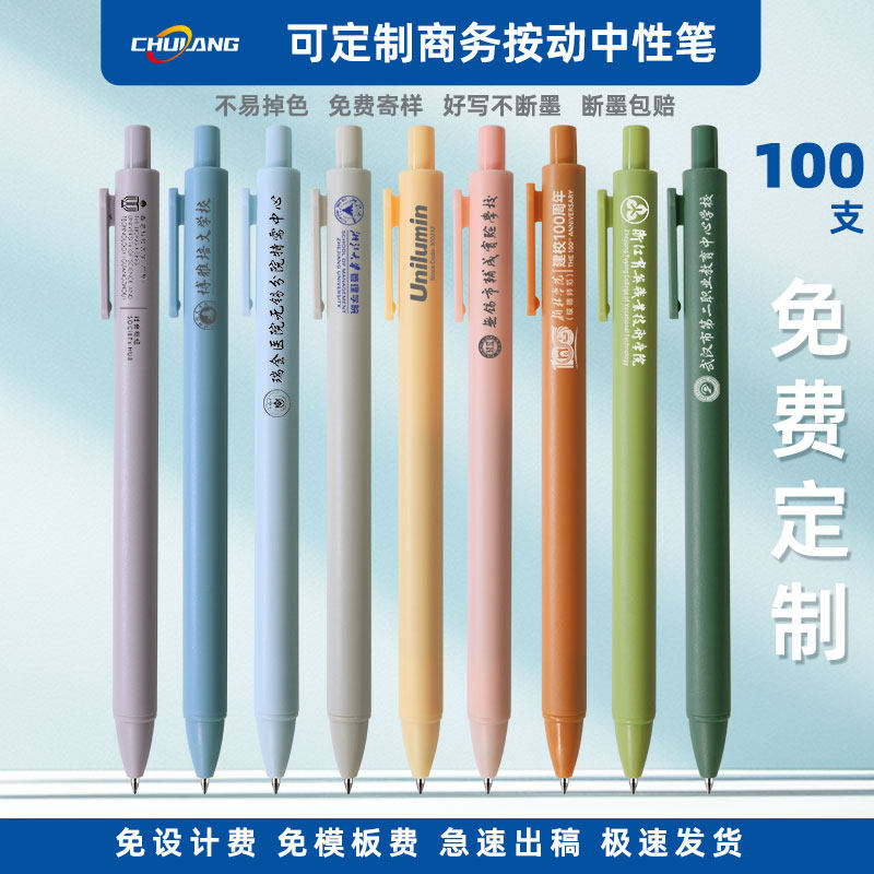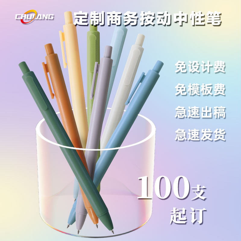【免定制费】100定制广告笔企业logo定做定制中性笔马卡龙复古色新款韩版按动中性笔 简约按压式黑色笔Z