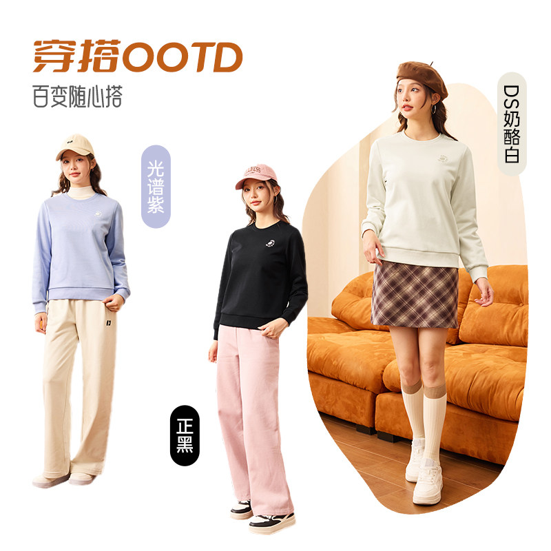 361运动卫衣女2025秋冬新款女士圆领加绒长袖套头衫女装休闲卫衣