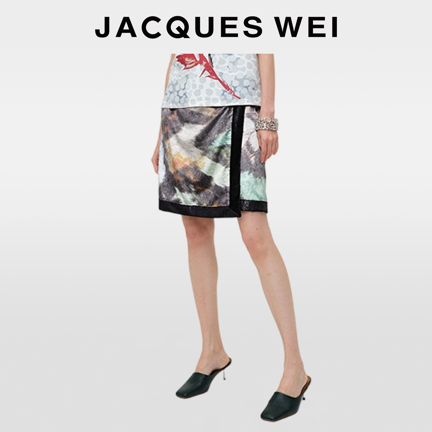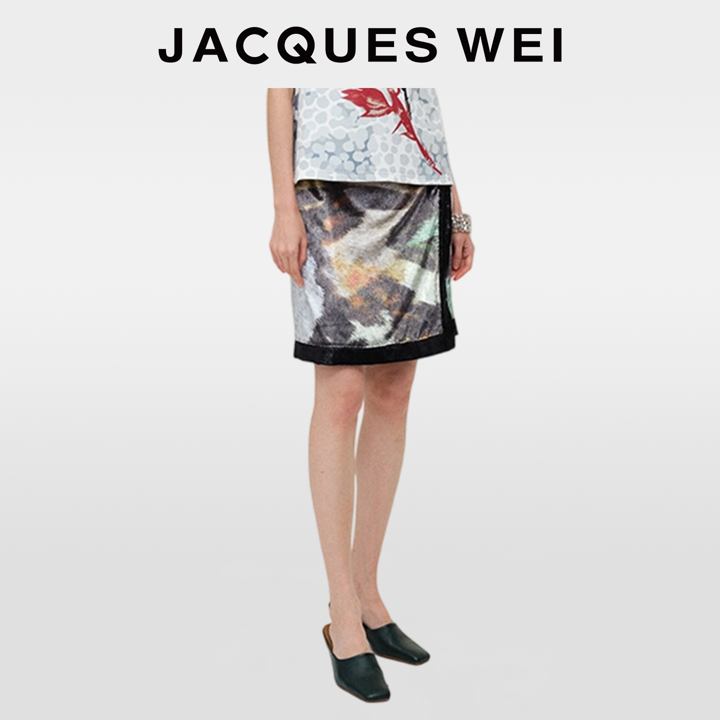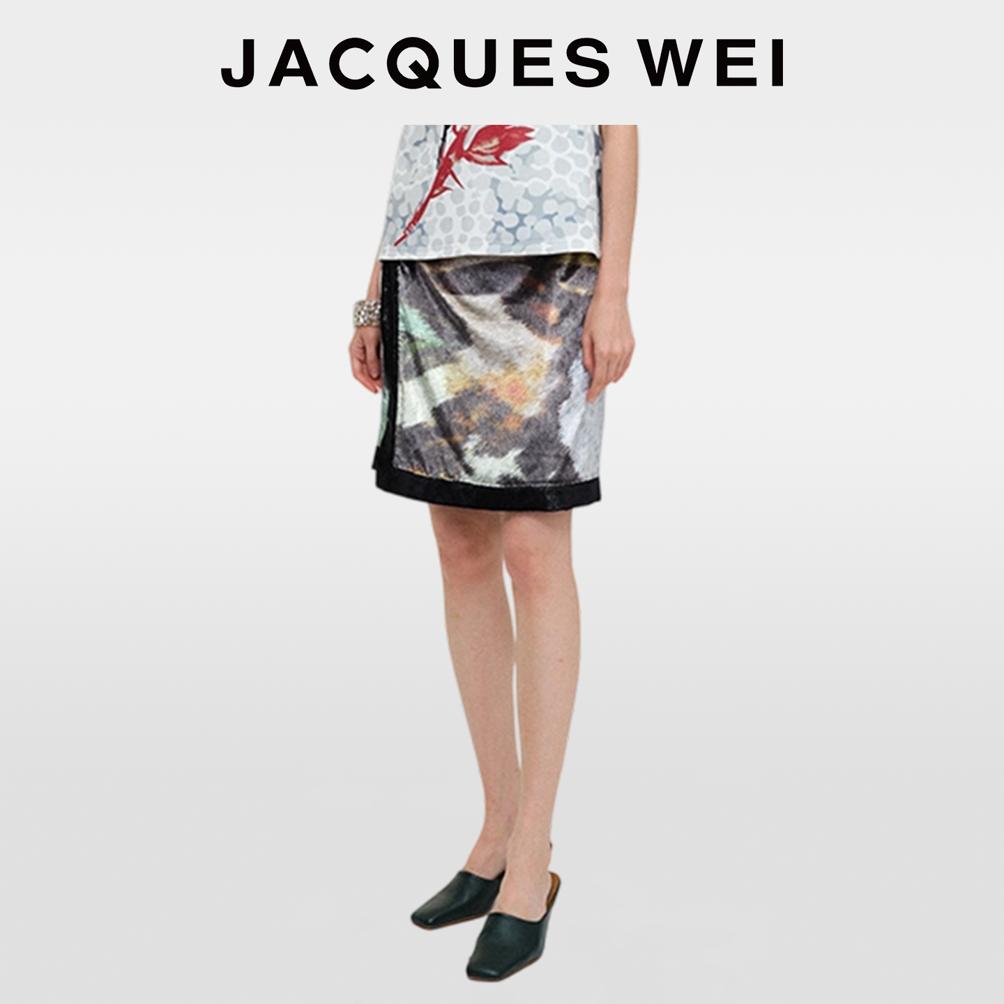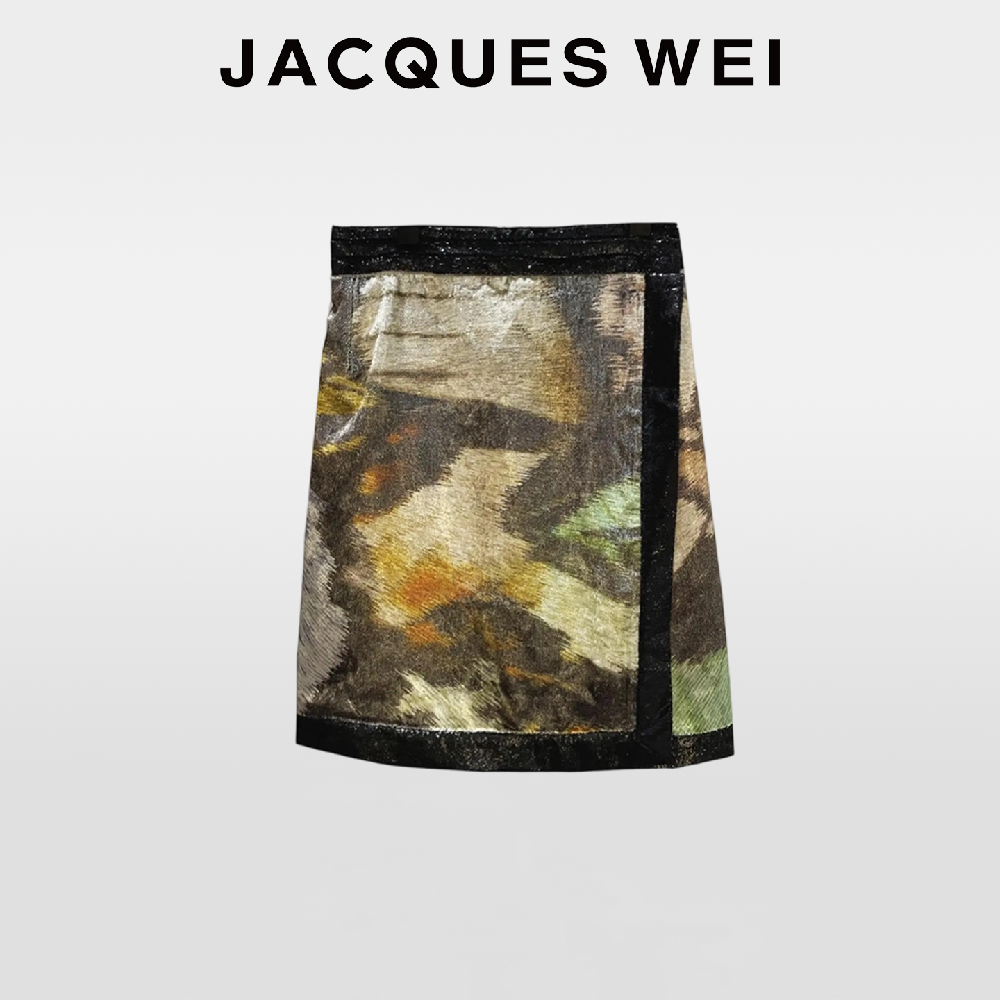 JACQUES WEI2025秋冬设计师款棕黑丝绒蝴蝶印花艺术感半裙冬女款