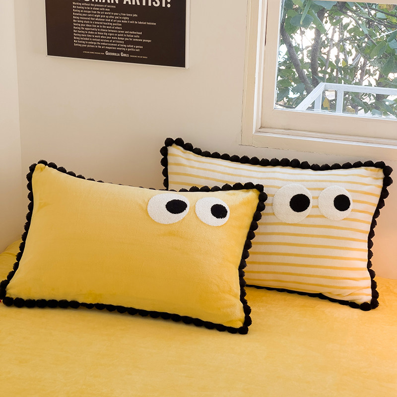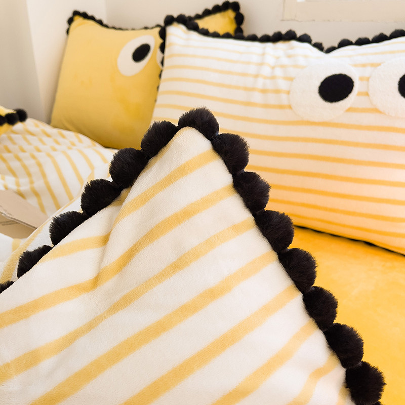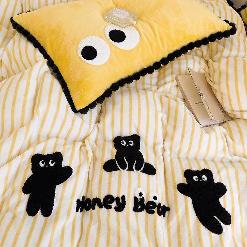 冬季保暖牛奶绒四件套毛巾绣条纹ins风床单床笠床上用品加厚法式