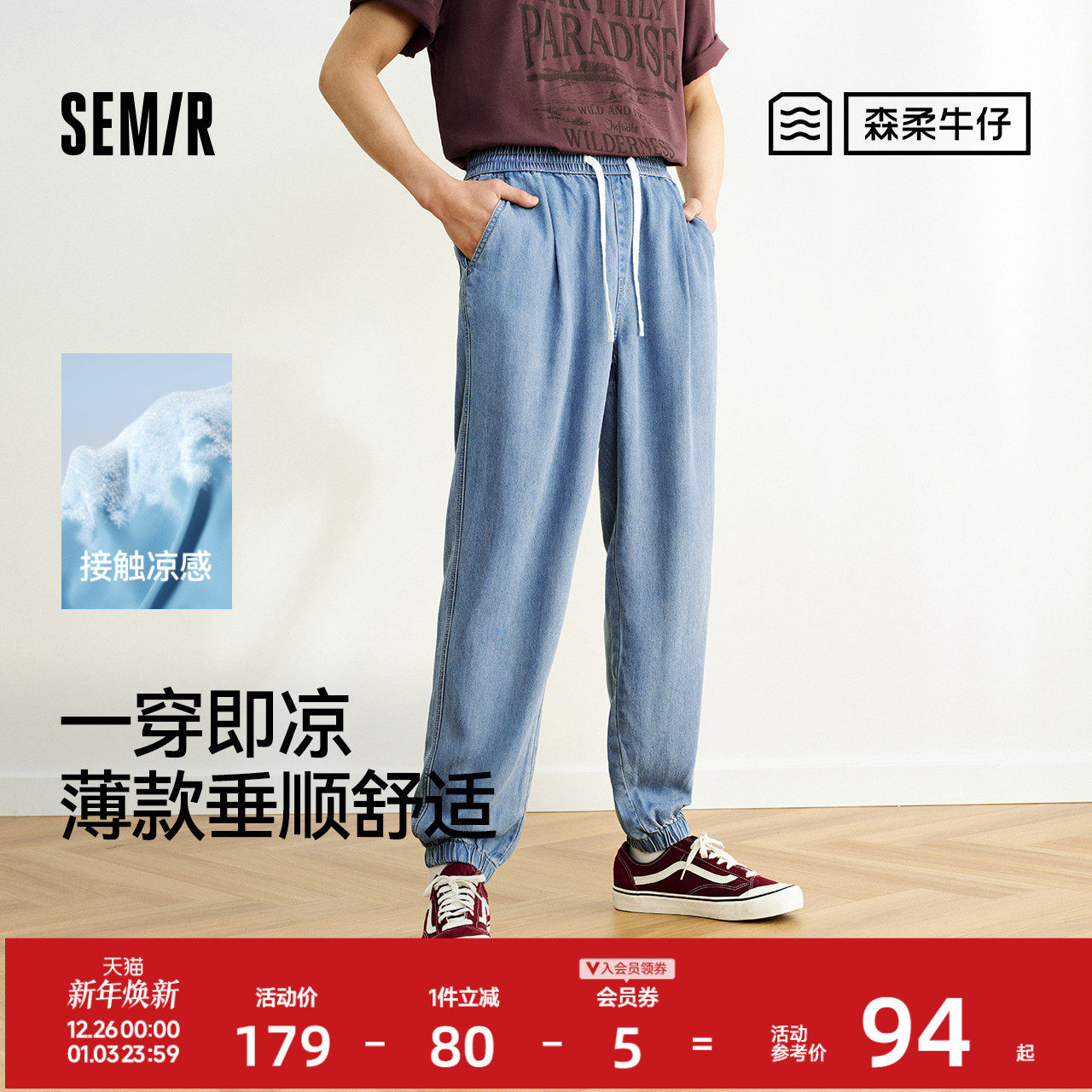 森柔牛仔森马牛仔裤男凉感莱塞尔宽松束脚裤25夏新款锥形长裤百搭