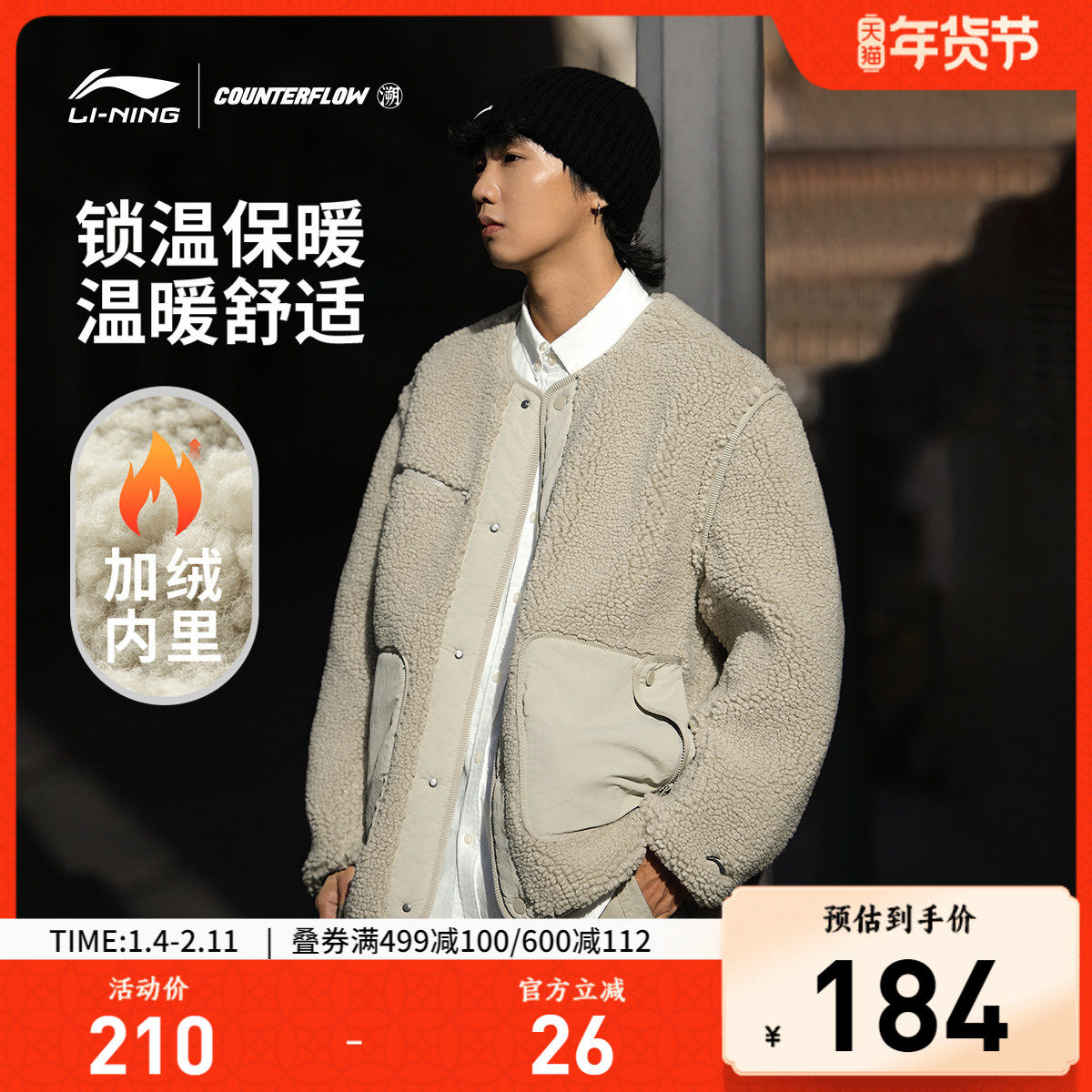 李宁CF溯外套男士开衫长袖茄克保暖宽松秋冬季针织经典休闲运动服