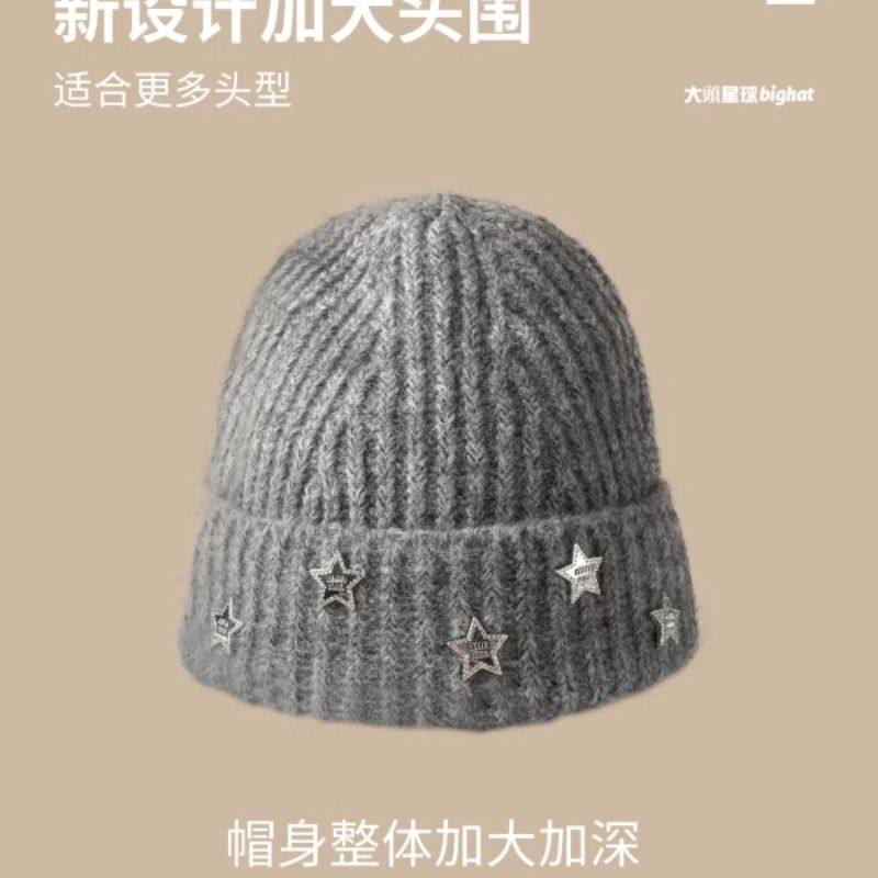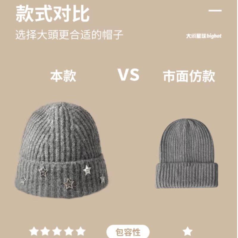 帽子女士冬毛线帽登山针织帽大头围显脸小包头帽防寒防风护头冷帽