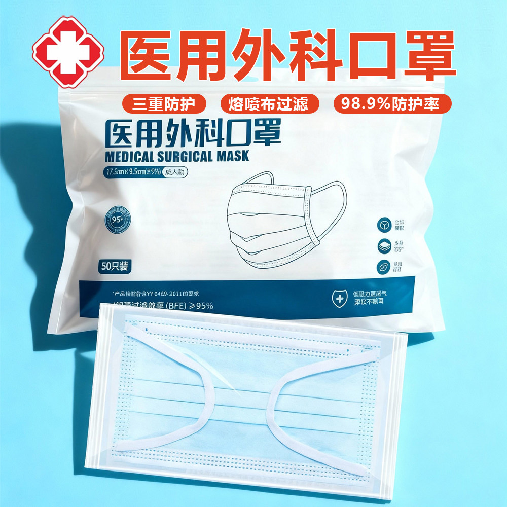 医用外科口罩一次性医疗三层官方正品旗舰店女高颜值透气单独包装