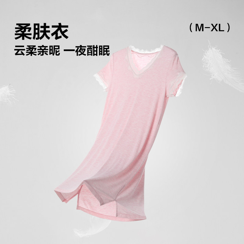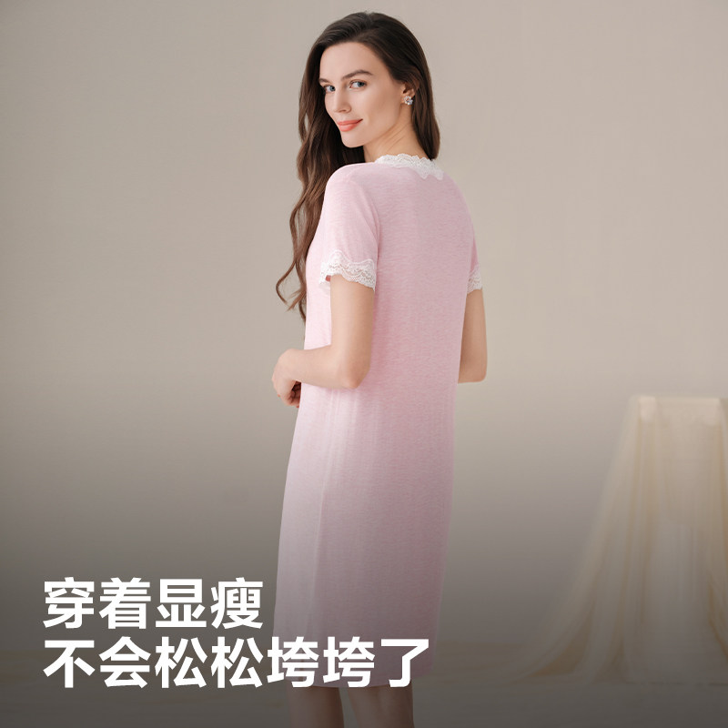 连衣裙女莫代尔短袖睡裙夏薄款打底裙外穿宽松百搭家居服大码长裙