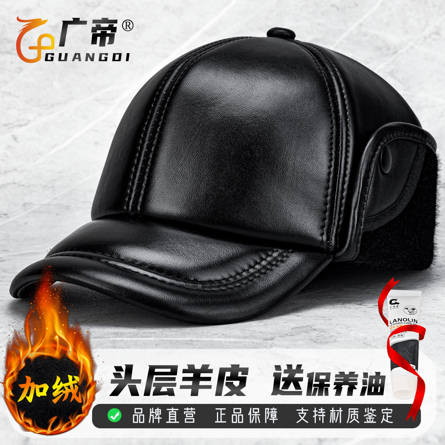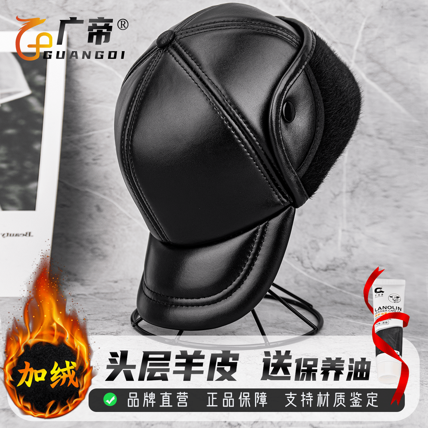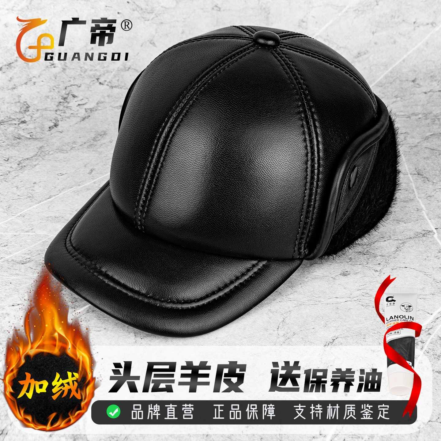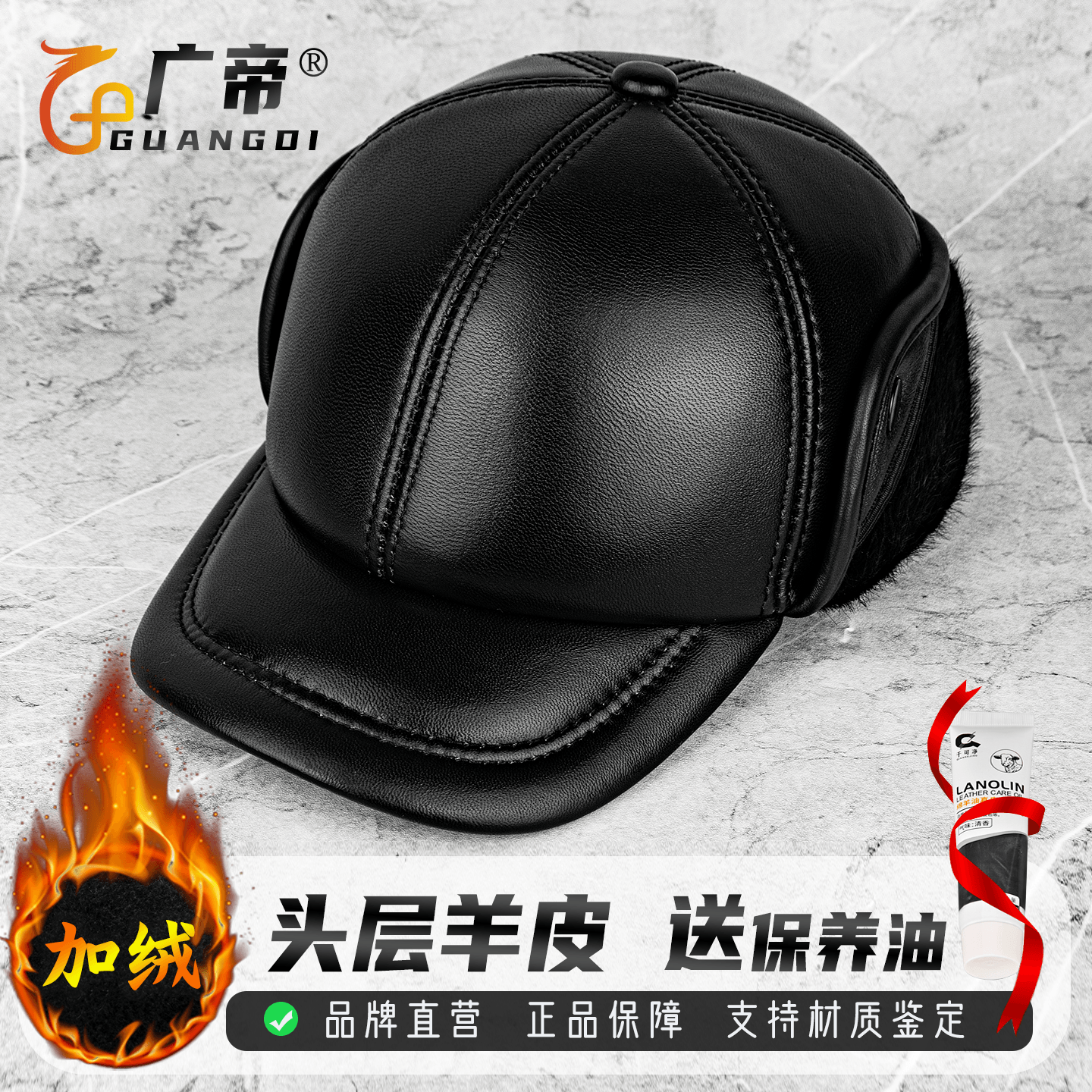 广帝 羊皮 冬季真皮帽子男加绒厚款中老年人保暖鸭舌帽护耳雷锋帽