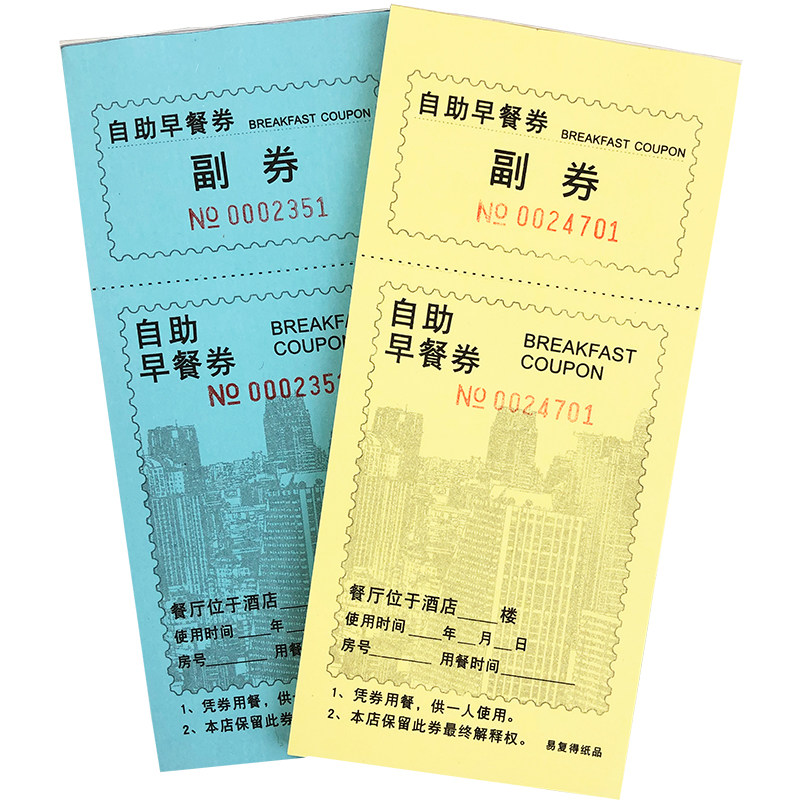 20本装自助早餐券定制印刷酒店宾馆早餐票饭票单早餐卷午餐晚餐券