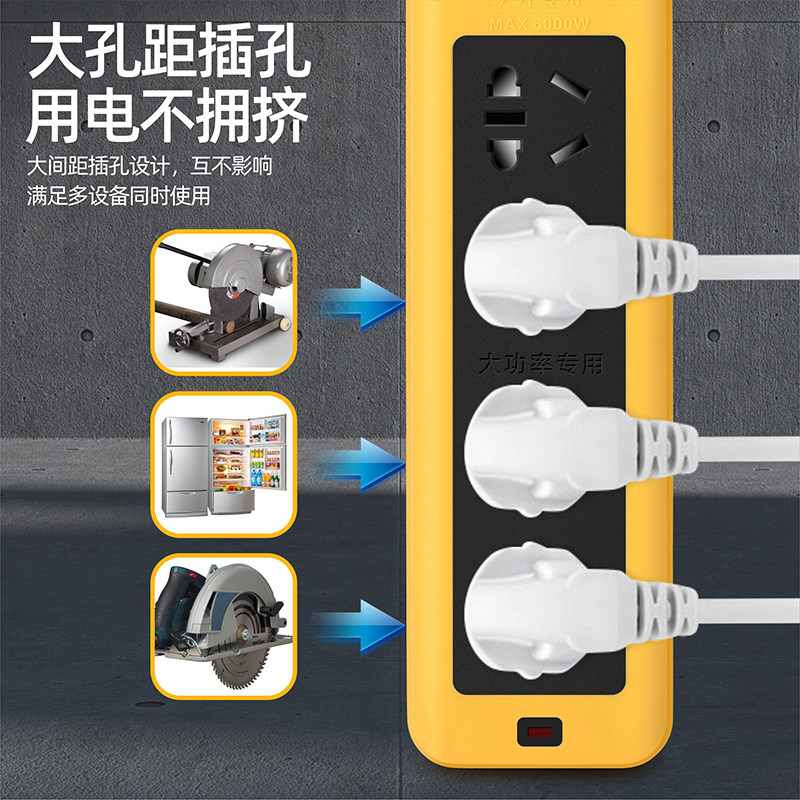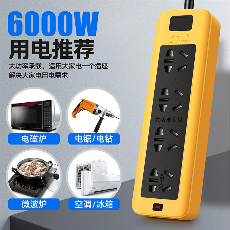 6000W大功率插排延长线10A/16A防摔家用空调电磁炉插座充电接线