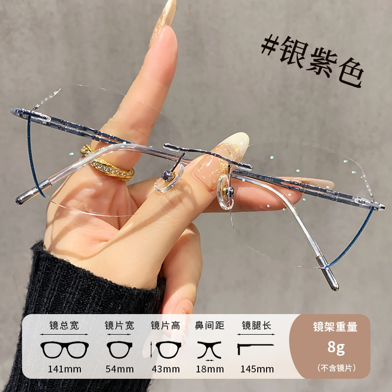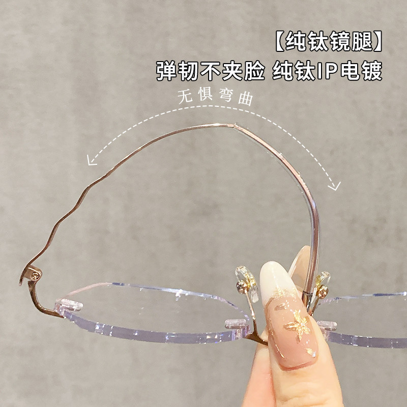 钻石切边无边框眼镜女近视可配度数高级感超轻纯钛眼睛架防蓝光