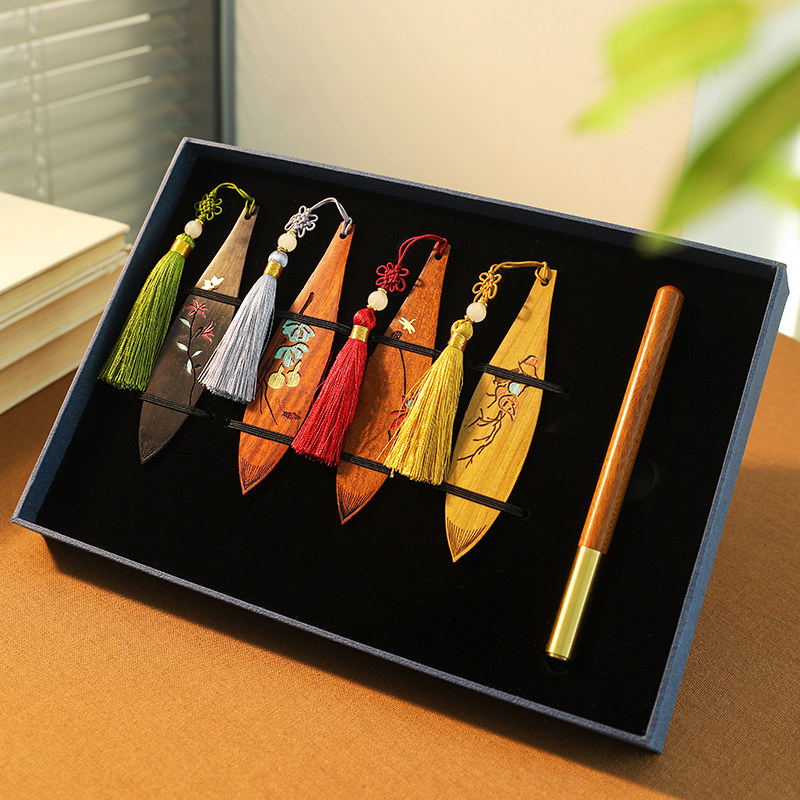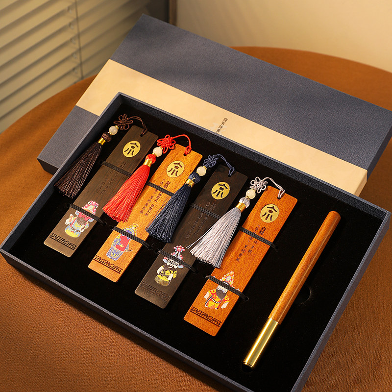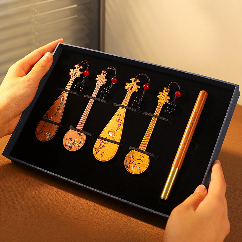 文创礼物来图定制刻字印logo乐器彩绘红木质书签古典中国风高档精致礼盒故宫博物馆设计学生教师节纪念礼品