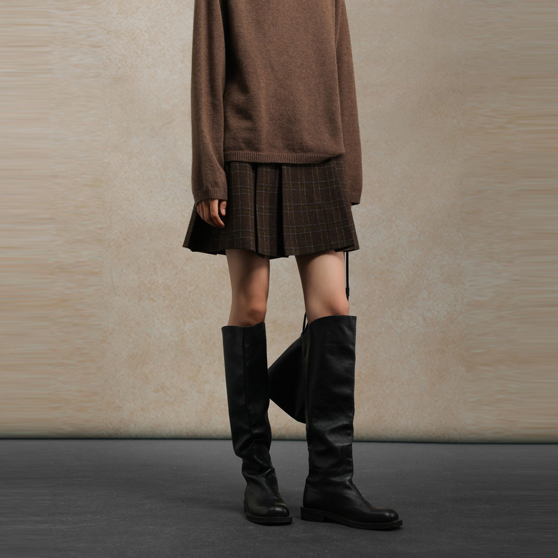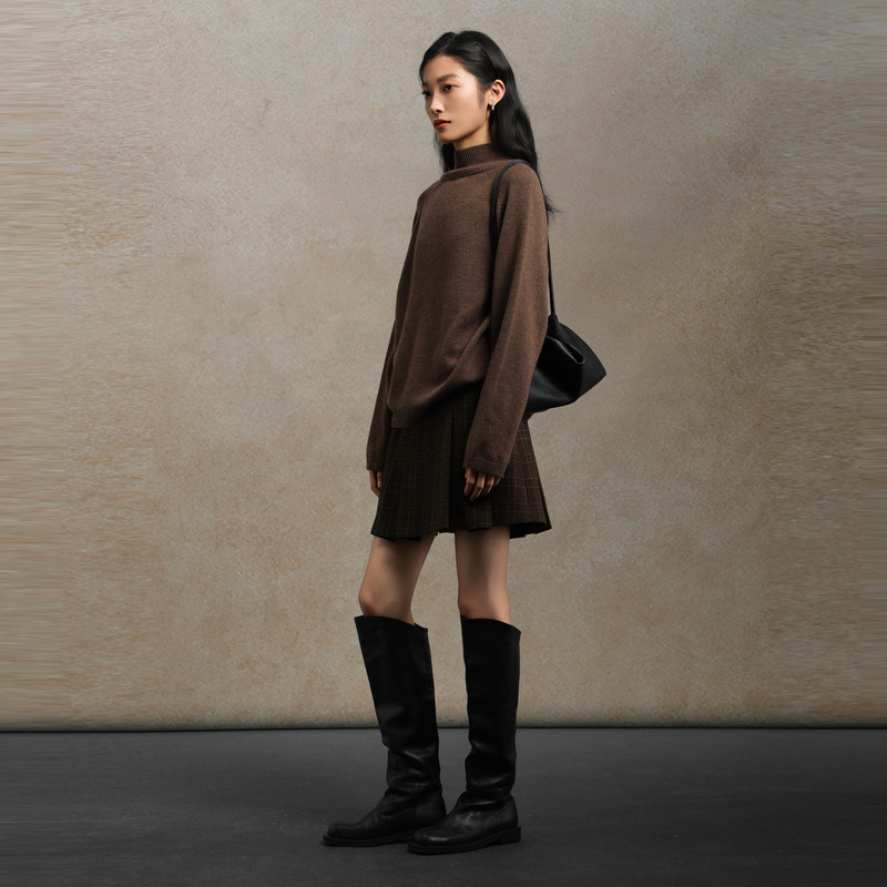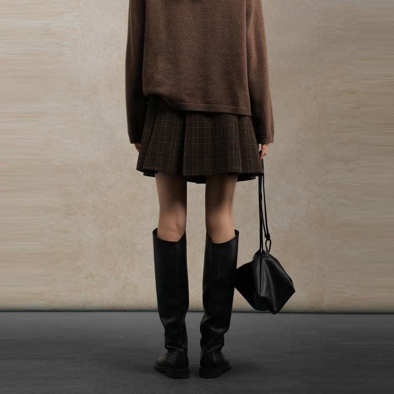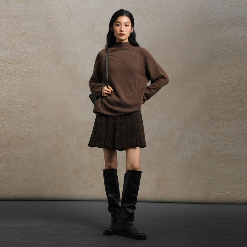 AIRIQI商场同款25冬新款A字复古格纹羊毛混纺短款半身裙AH54BQ295