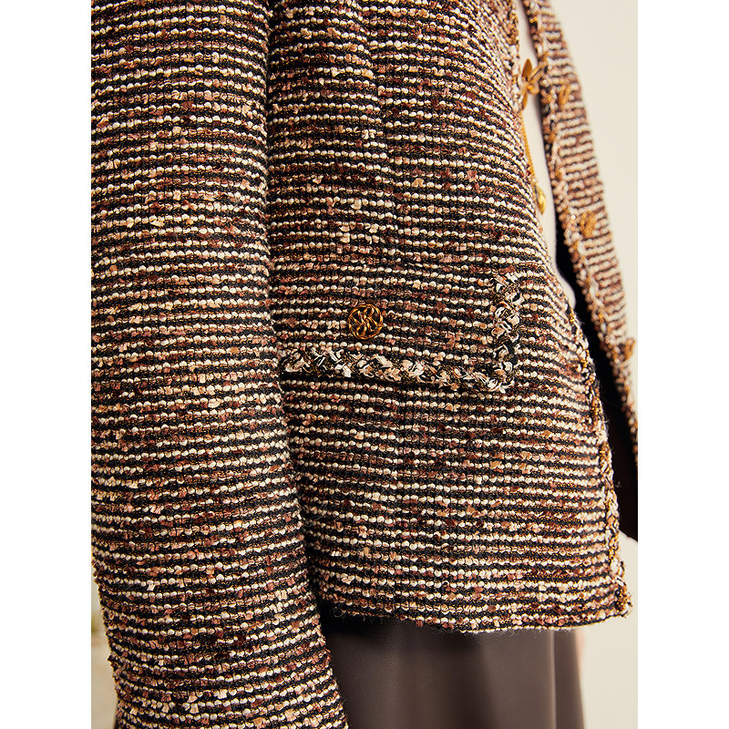 YINER音儿专选2025冬季新款法式优雅小香风粗花呢金葱闪丝短外套