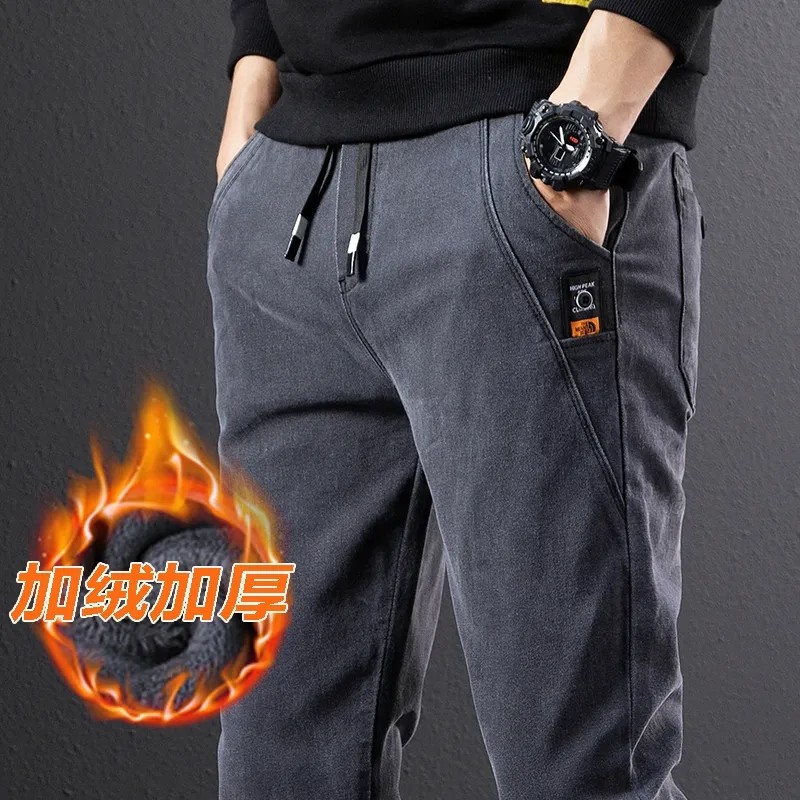 啄木鸟男士加绒加厚牛仔裤冬季超厚保暖宽松直筒长裤抗寒休闲裤子