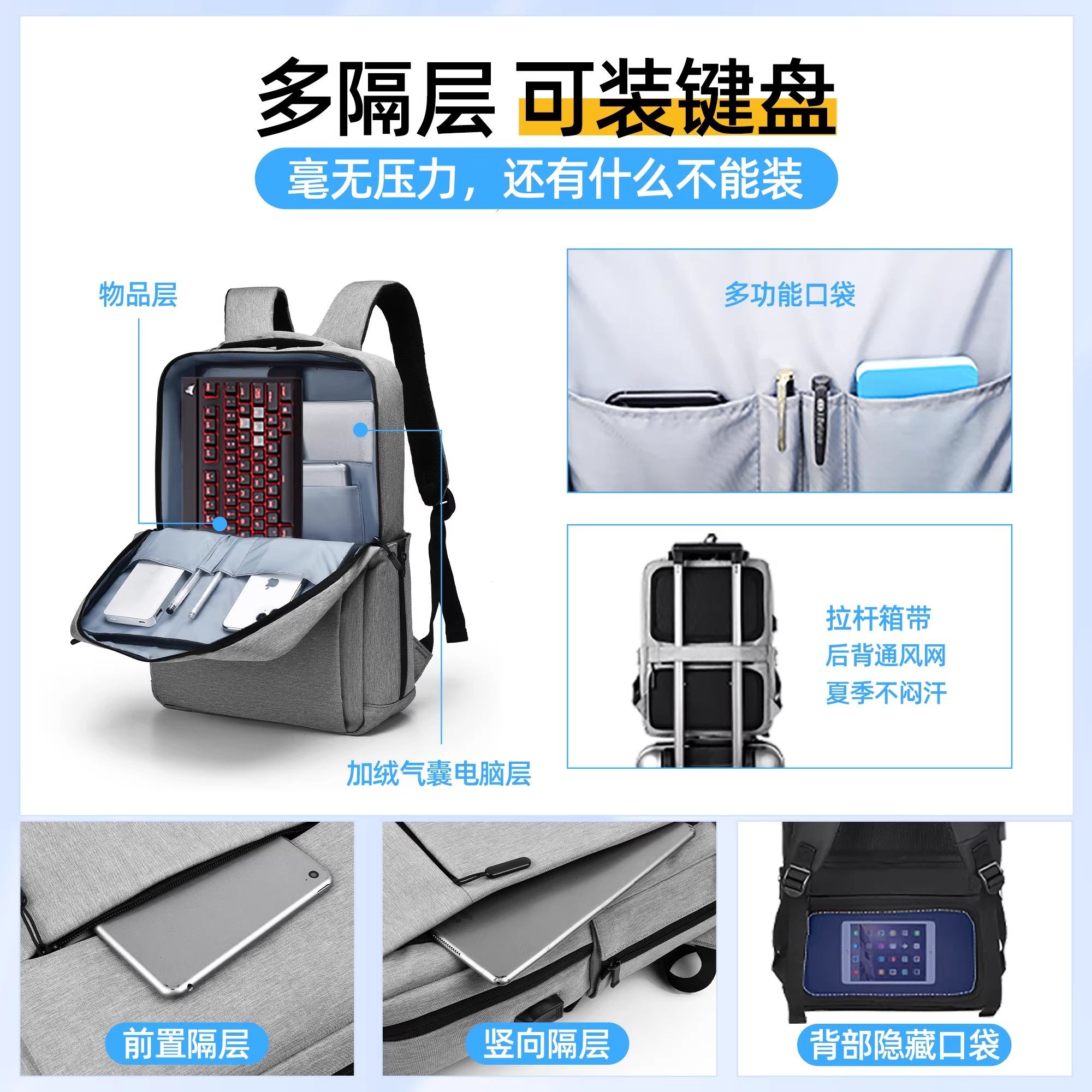 德国笔记本电脑双肩背包气囊防震男女同款通勤出差旅行大容量书包