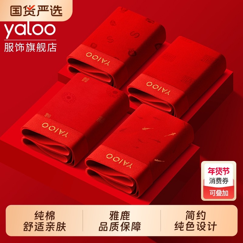 男士内裤男生红色雅鹿纯棉本命年2025马年四角短裤青少年平角裤头