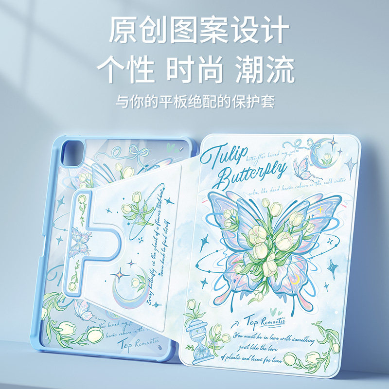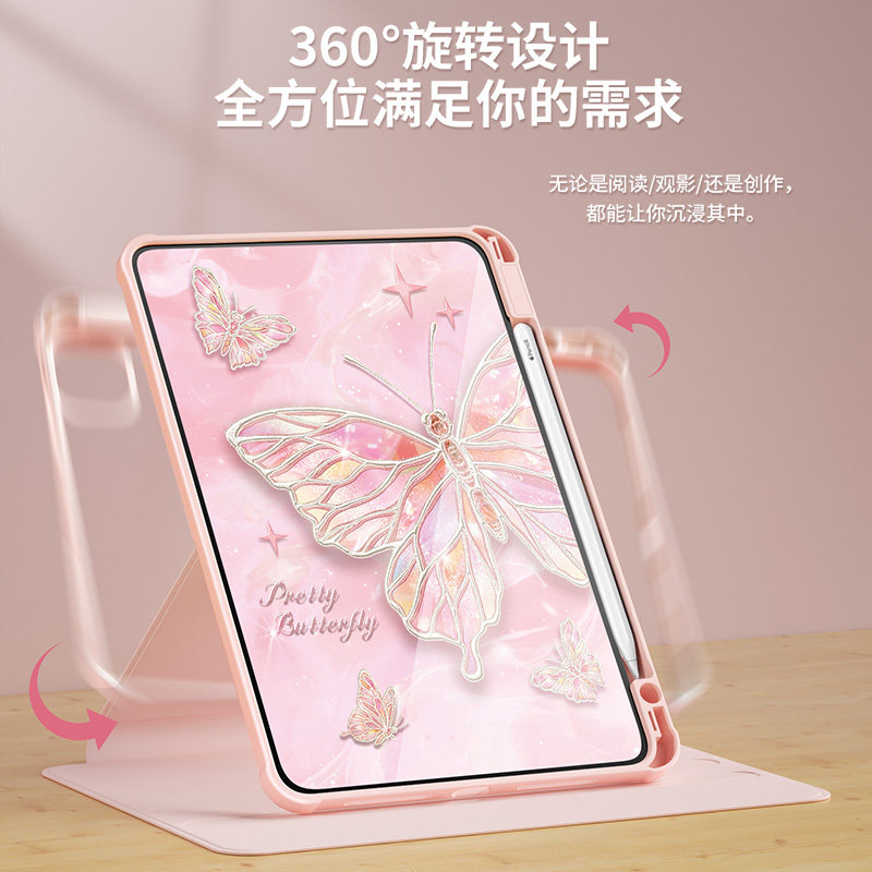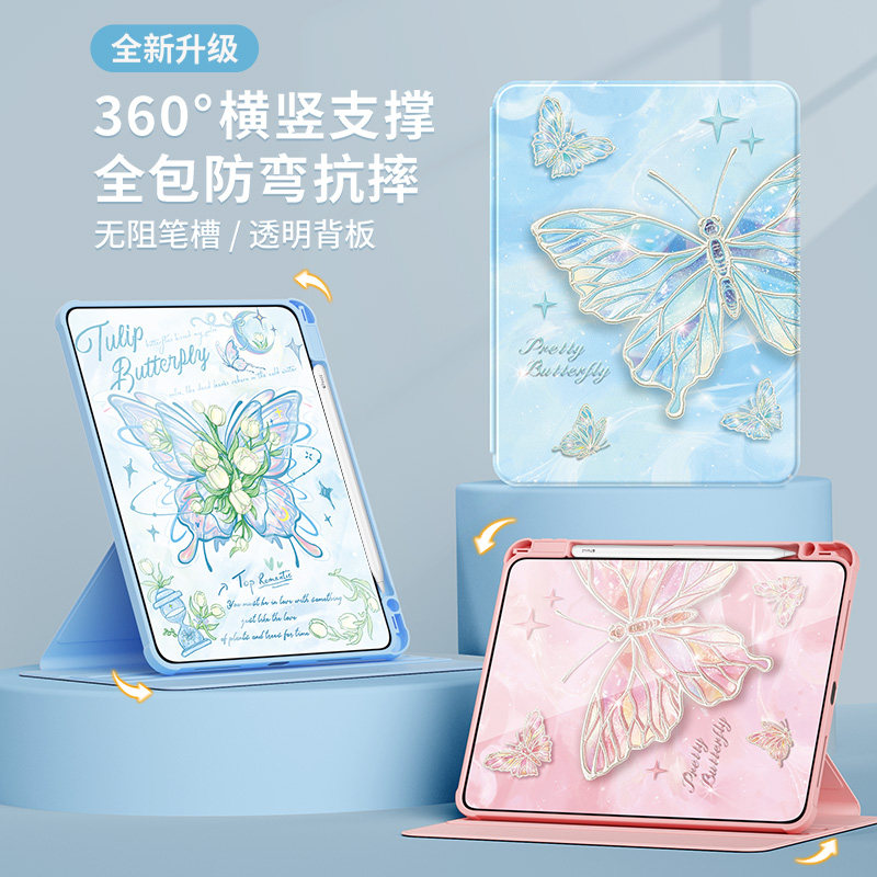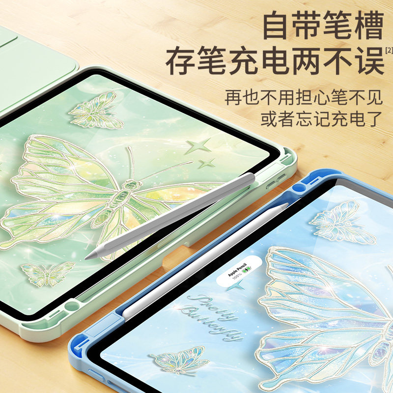适用ipadair保护套2024新款第11代平板壳带笔槽全包mini7/6防摔迷你5/4亚克力2021苹果ipad10/9可旋转8冰蝶