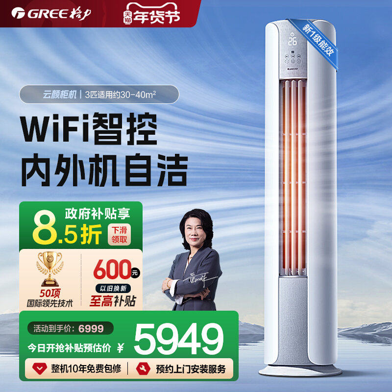 【Gree/格力官方】新一级3匹变频冷暖客厅节能立式空调柜机云颜