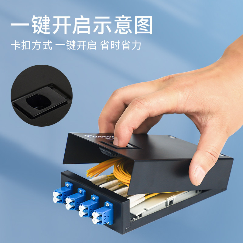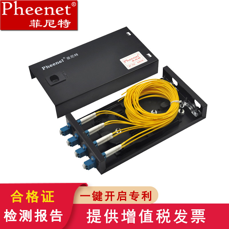 菲尼特 LC4口8芯单模满配桌面式光纤终端盒壁挂式LC8芯多模万兆OM3光缆尾纤熔接盒电信级OM4板厚0.8加厚款