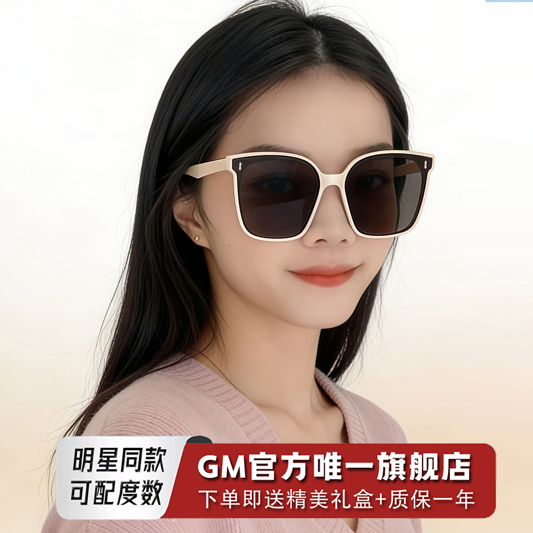 GM墨镜偏光近视太阳镜米白框眼镜可配度数