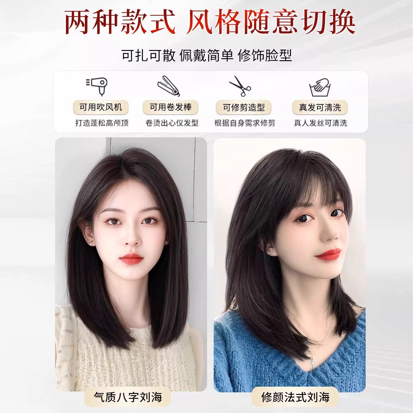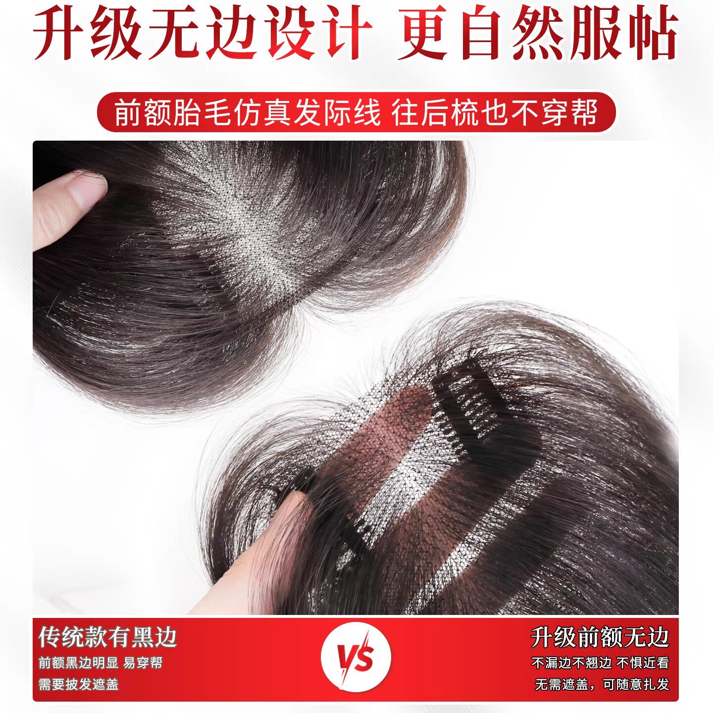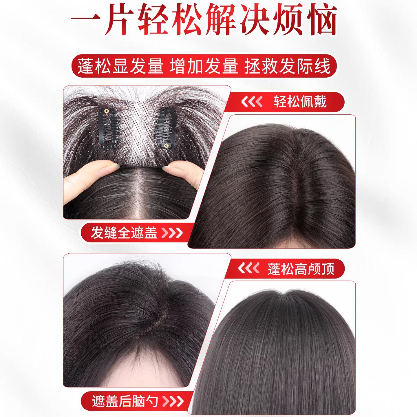 真发假发女片头顶增发量蓬松高颅顶遮白发自然隐形无痕刘海补发片