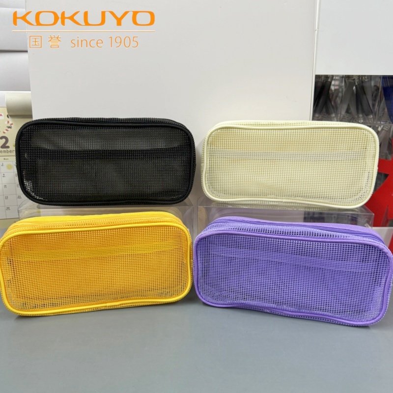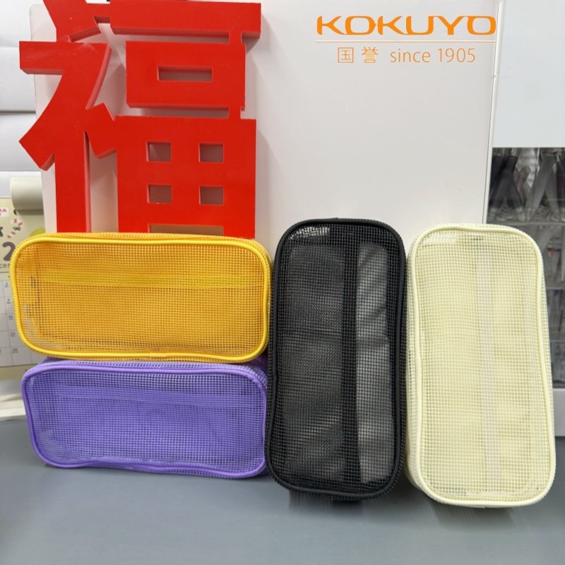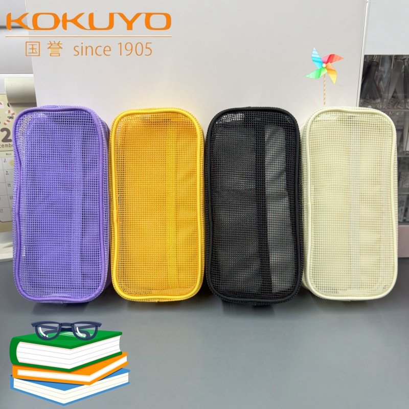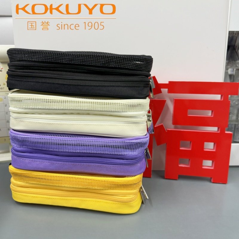 日本国誉网格笔袋Campus系列学生大容量双层分类收纳简约多功能包