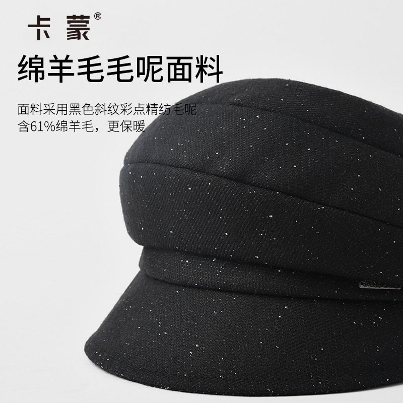 卡蒙绵羊毛呢鸭舌贝雷帽女秋冬时尚亮片百搭画家帽显脸小加绒保暖