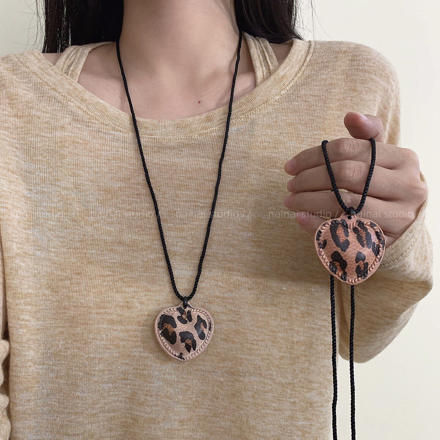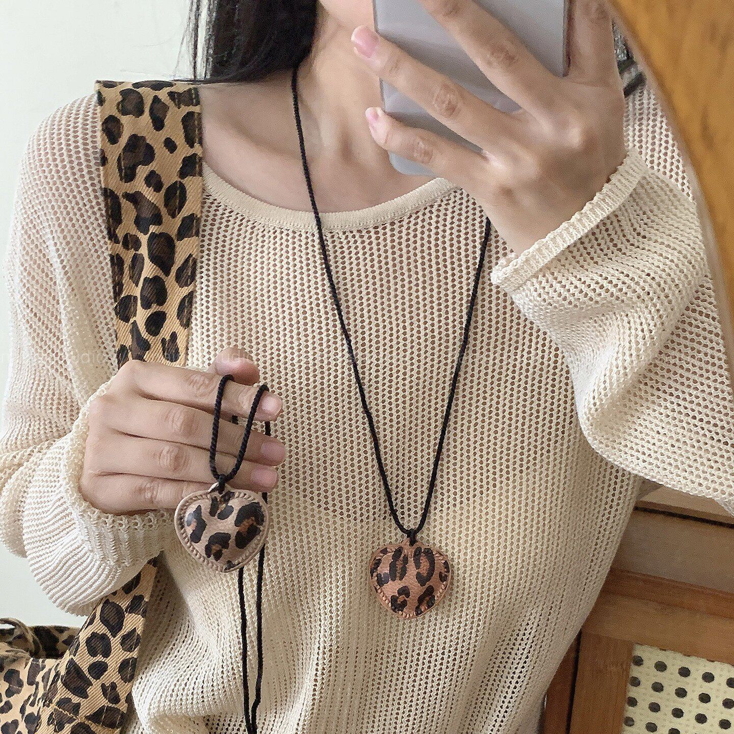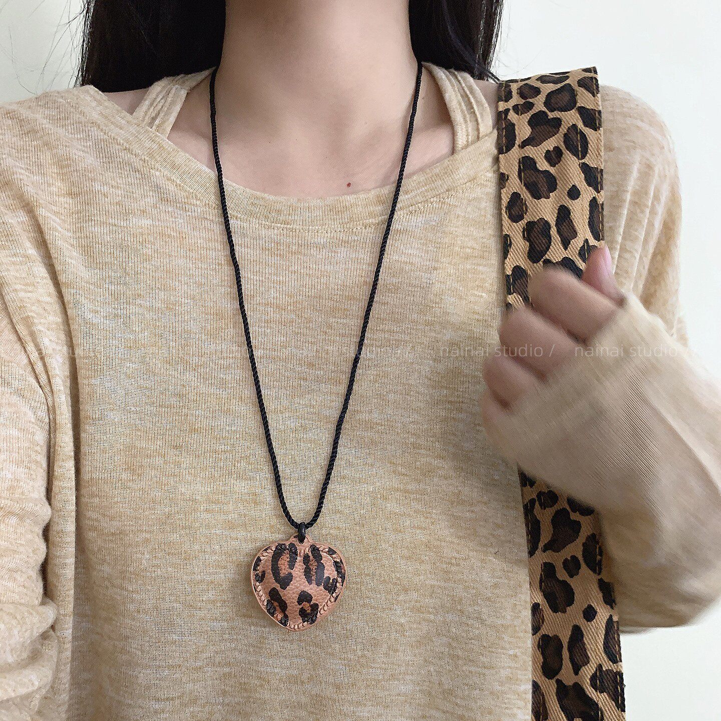 fever同款豹纹爱心项链~挂脖毛衣链ins风韩系高级感卫衣链配饰女