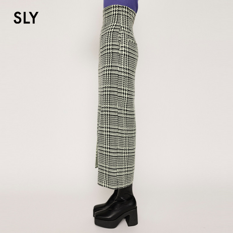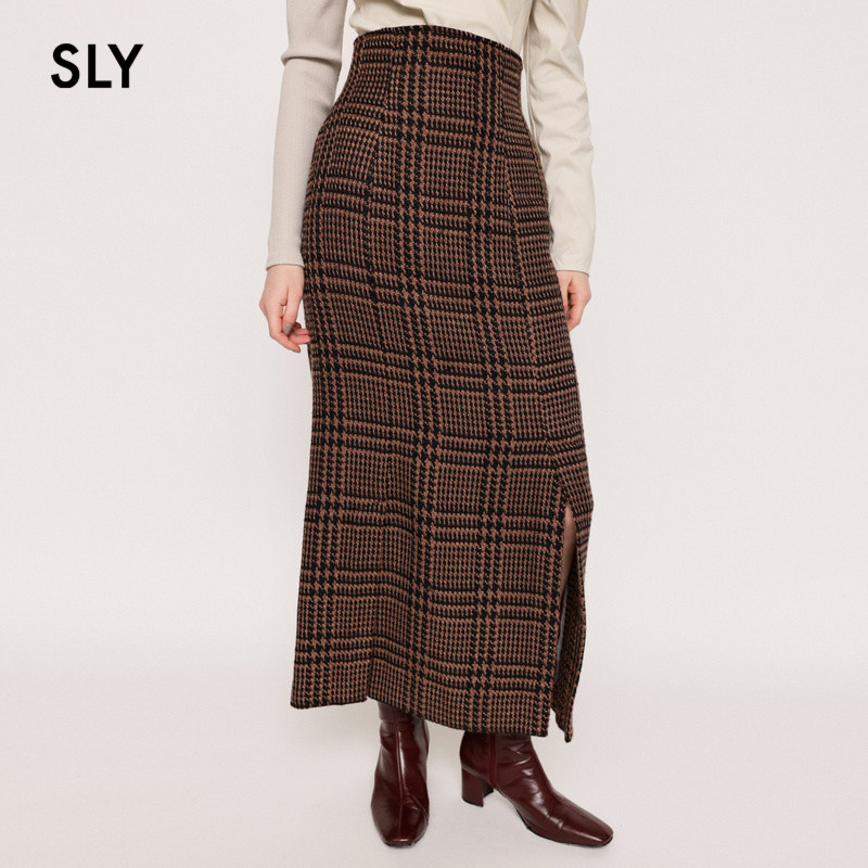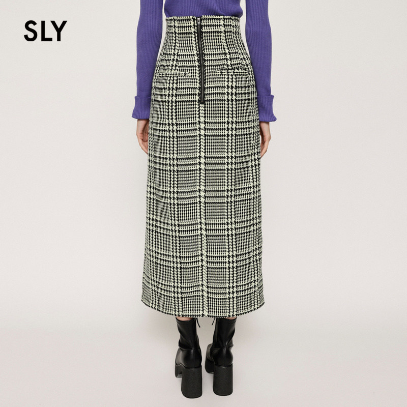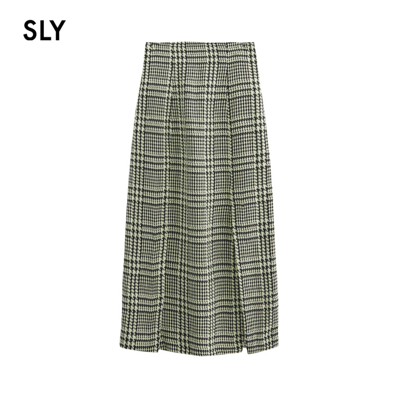 SLY 2023冬季新品千金玛德琳复古格纹开叉半身裙女030FAY31-5070