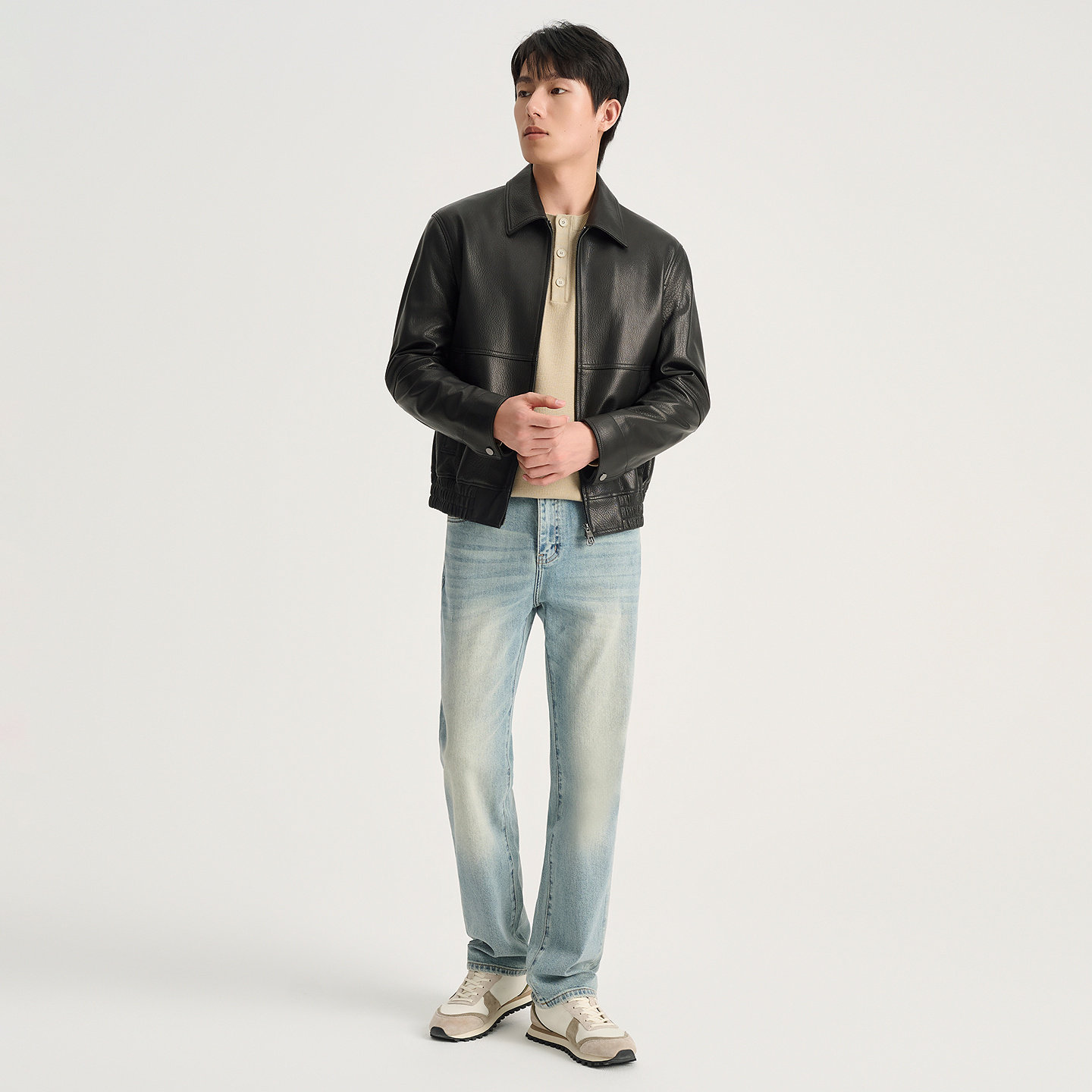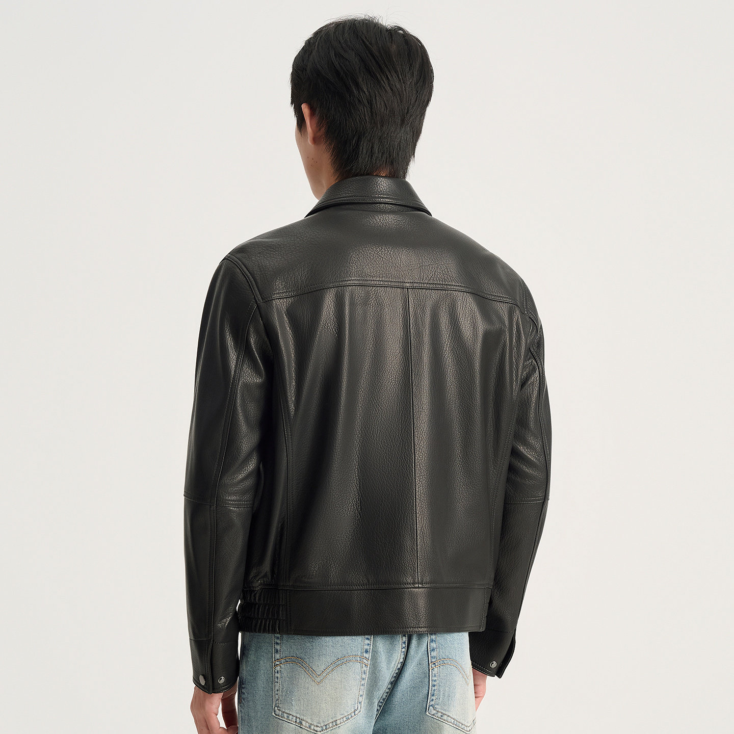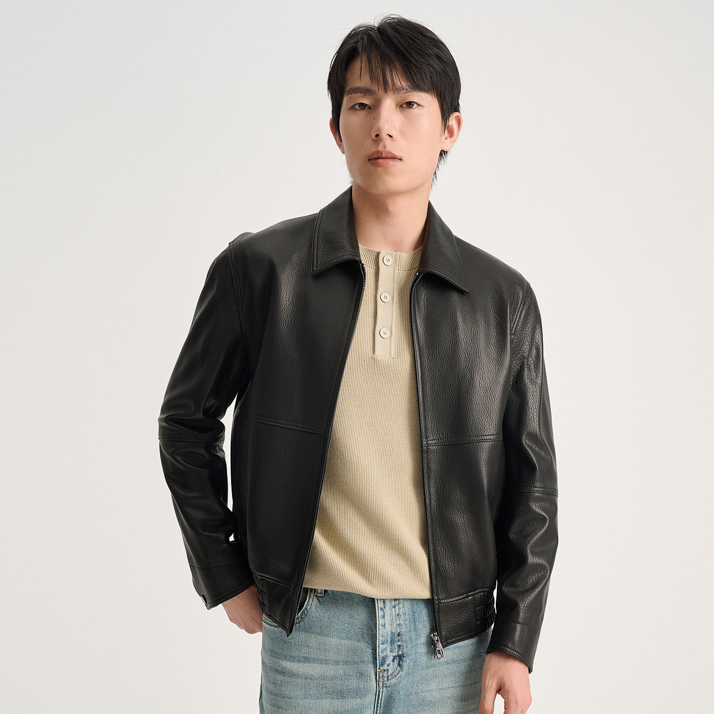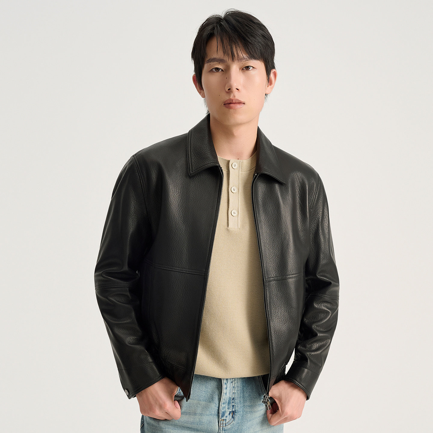 【绵羊皮】九牧王翻领皮衣外套男秋冬真皮修身商务立领皮夹克男装