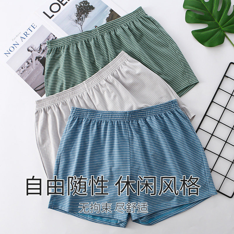 纯棉男士内裤男阿罗裤男款平角裤男生四角短裤夏条纹高弹抗菌亲肤