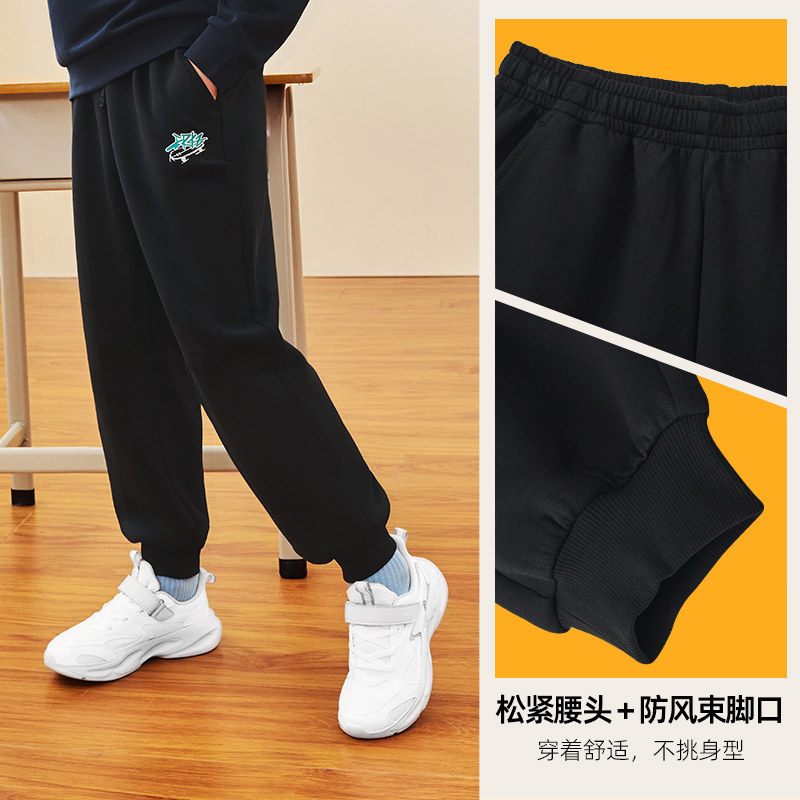 鸿星尔克童装男童卫裤秋季新款宽松吨吨裤中大童运动裤针织长裤子