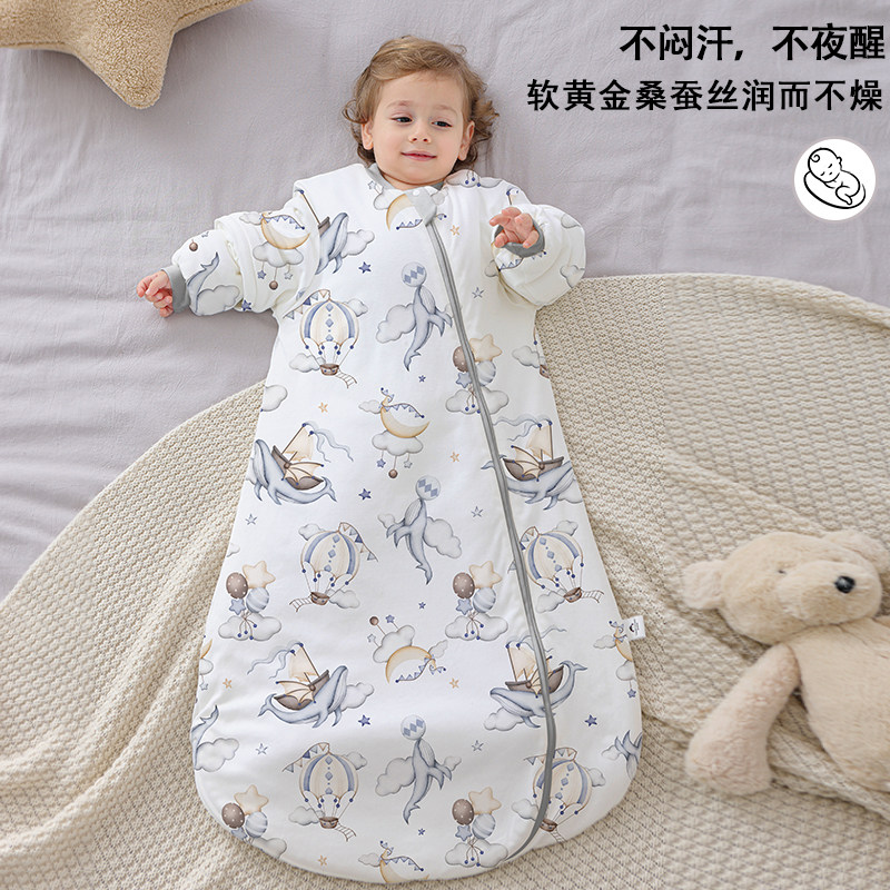 科巢婴儿睡袋春秋冬款恒温分腿睡袋桑蚕丝宝宝儿童防踢被四季通用