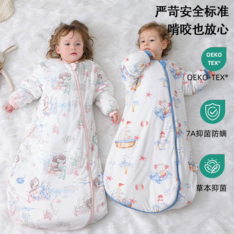cutelife【轻羽】宝宝秋冬睡袋竹棉分腿儿童防踢被子加厚防寒A类