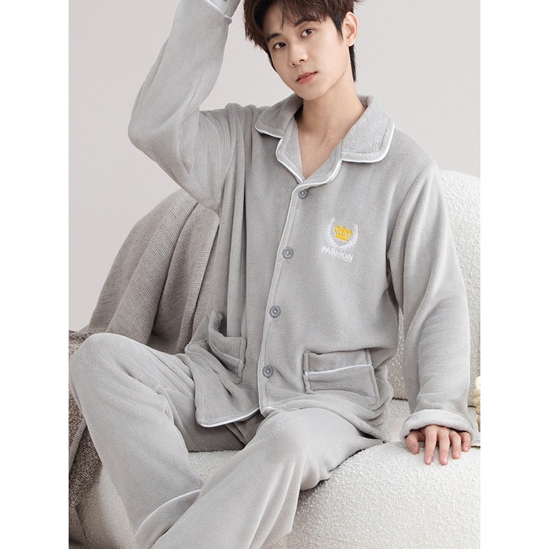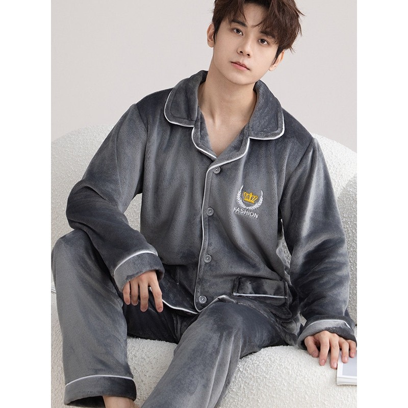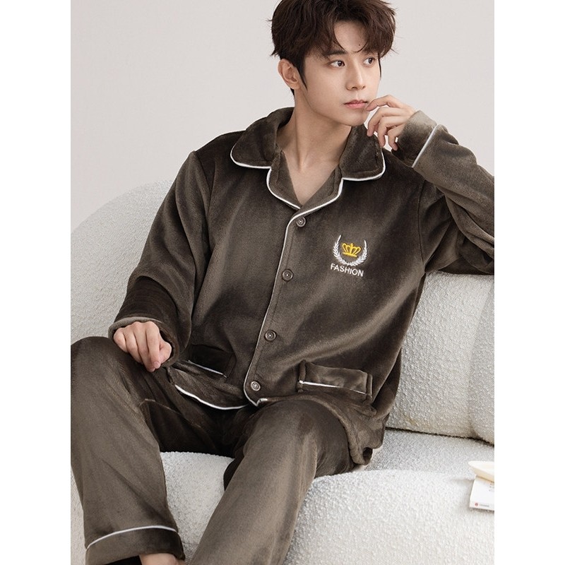 新款珊瑚绒睡衣男士秋冬款加厚套装加绒法兰绒男款冬季家居服大码