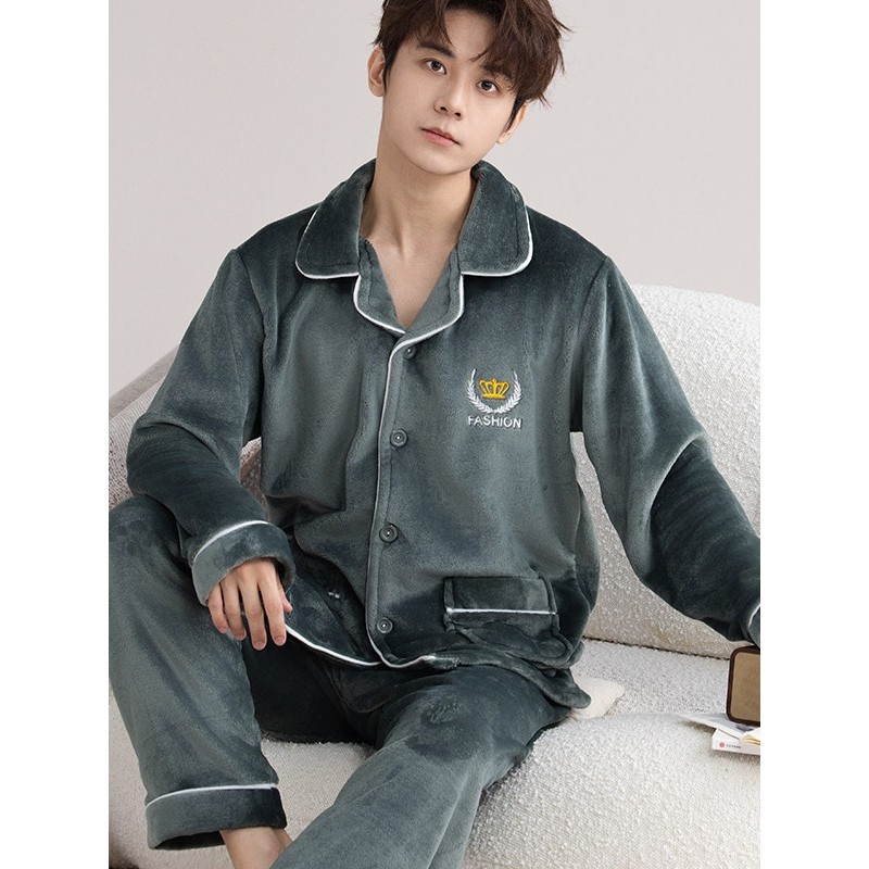 珊瑚绒睡衣男款冬季加厚加绒2025年新款青少年大码秋冬家居服男生