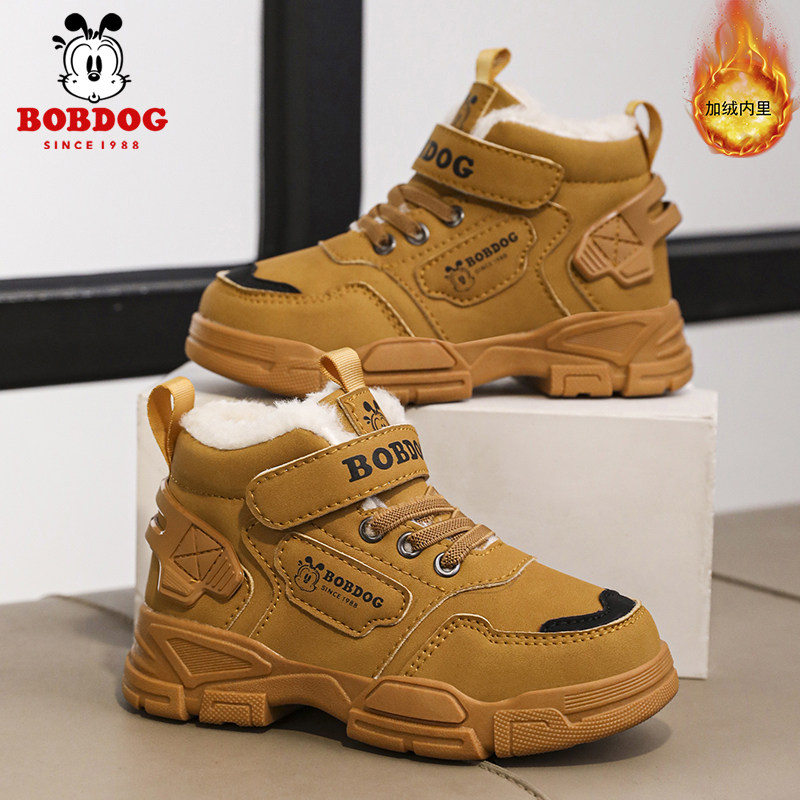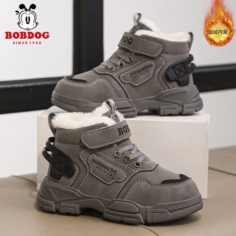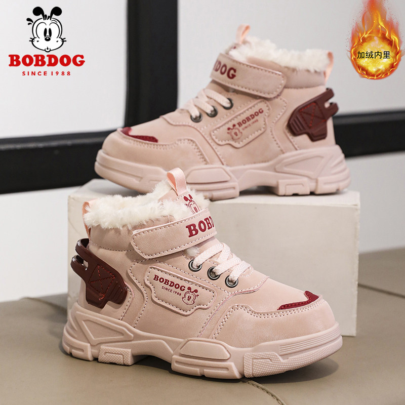 巴布豆男童雪地靴2025冬季新款女童加绒加厚儿童大棉鞋子童鞋防滑