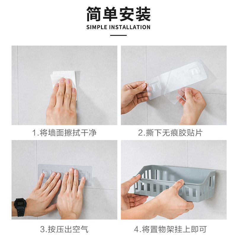 吸盘置物架厨房浴室卫生间免打孔壁挂式墙上收纳神器洗漱台收纳盒