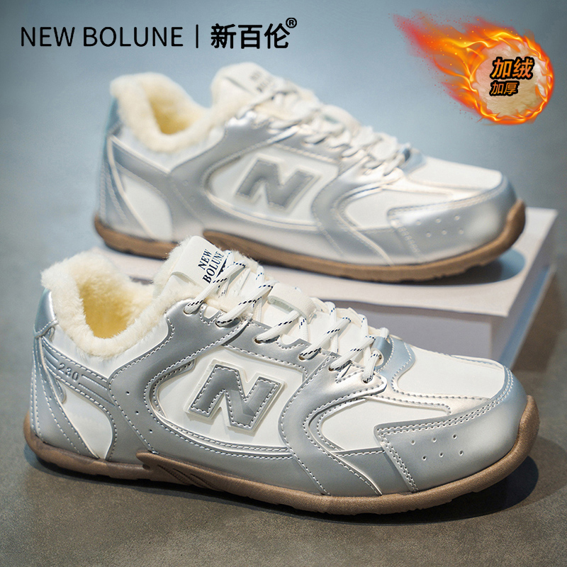 新百伦2025秋冬季加绒情侣款男女低帮时尚潮流百搭软底保暖休闲鞋