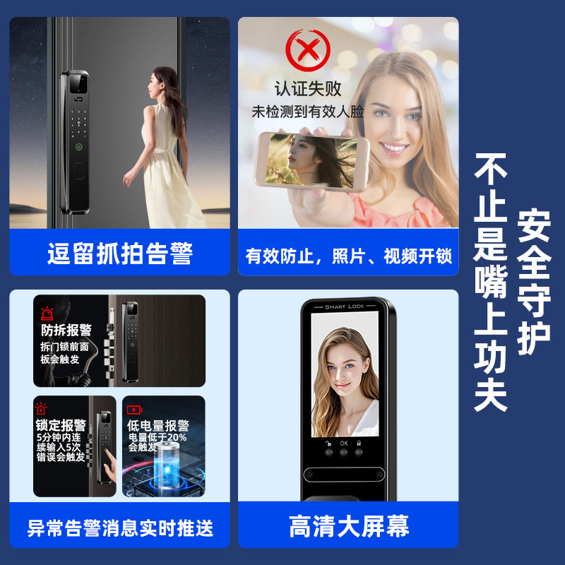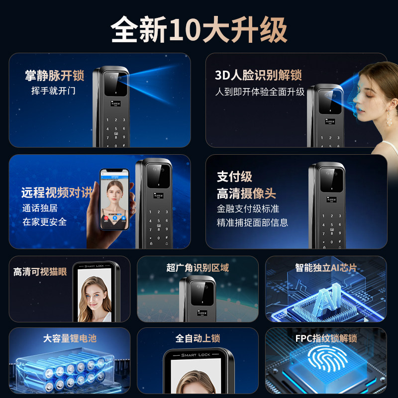 人脸识别指纹锁密码锁智能锁电子家用防盗锁全自动智能门防盗门