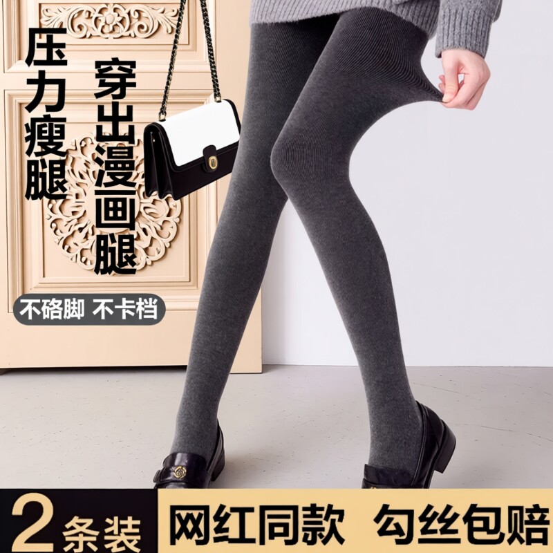 菇娘家灰色打底裤连裤袜女冬外穿加厚保暖大码深灰色瘦腿压力袜