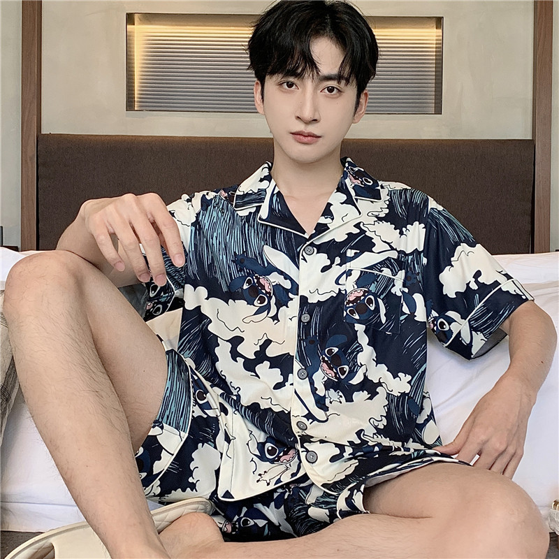 睡衣男夏天短袖螺纹冰丝凉感薄款卡通青少年男款大码家居服夏套装